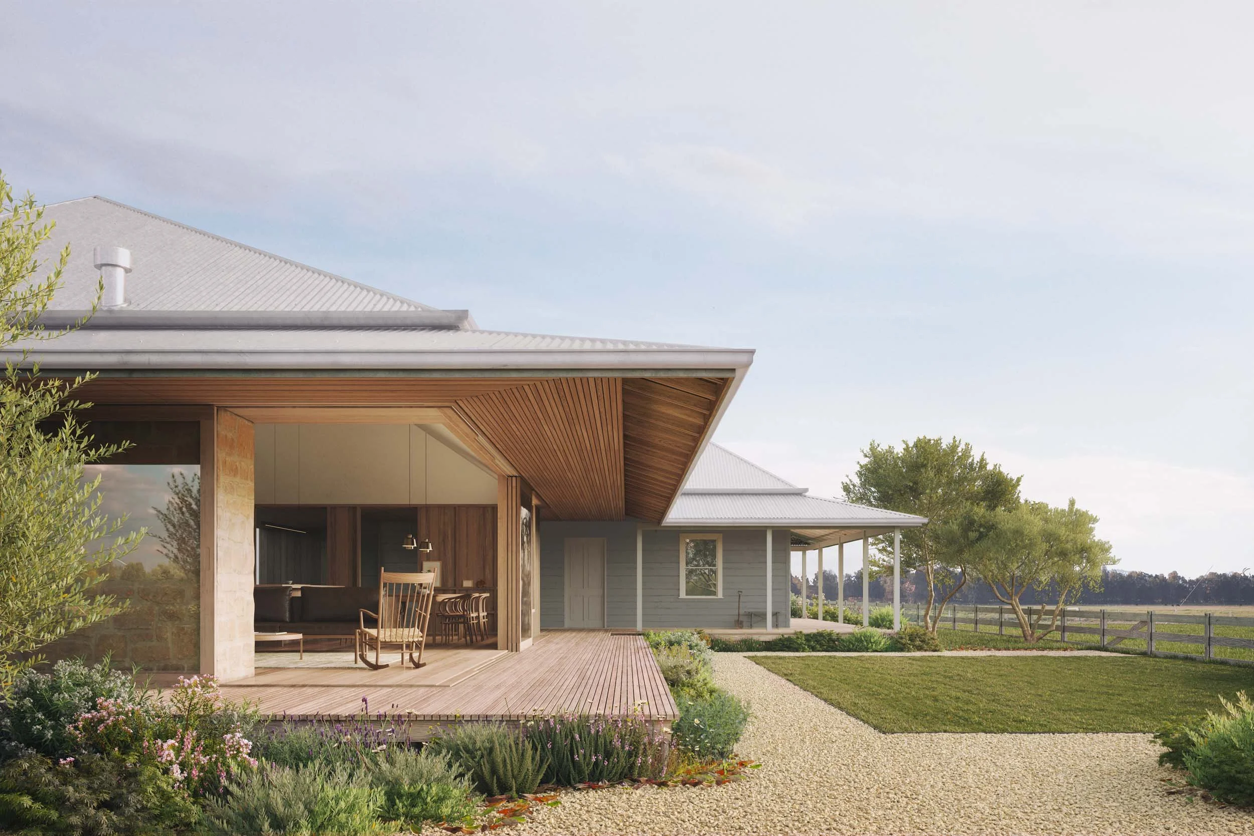 Located on Mitchell’s Island, near the Manning River, our clients are the custodians of a run-down farmhouse that has been in their family for three generations. Our brief was to advise on the sympathetic restoration of the original dwelling and the addition of a new ensuite and open-plan living area that would not detract from the modest scale and charm of the existing cottage.